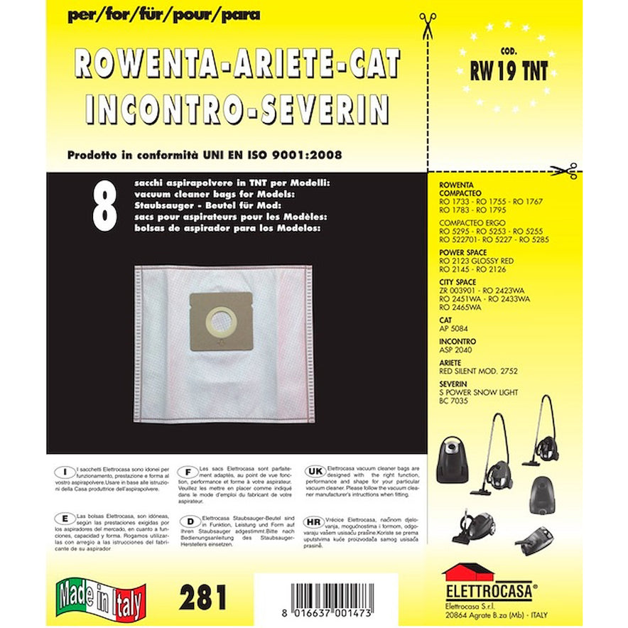 Articolo della famiglia Sacchetti Aspirazione di marca ELETTROCASA modello numero RW19TNT